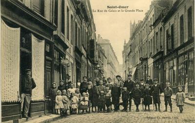 Cette rue trés commerçante, était la rue ou se trouvait la porte de Calais,du temps ou St Omer était fortifié, on l'empruntait pour aller vers St Martin au laërt. |