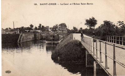 Sur cette vue on aperçoit sur la droite la rue de l'Ecusserie, et sur la gauche la rue Caventou, on peut voir au centre la fontaine de l'enfant au cygne qui fût construite en 1860. A cet endroit on se trouve dans le haut de la rue St Bertin. |