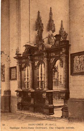 On se trouve en réalité devant un cénotaphe qui ne contient pas le corps . Il date du XIIIéme siècle et nous rappelle que l'on se trouve à l'endroit où fut enseveli Saint Omer au VIIéme siècle . |